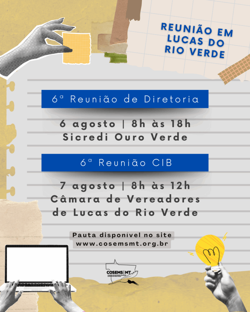 O Presidente do Conselho de Secretarias Municipais de Saúde de Mato Grosso (Cosems/MT) e o Secretário de Saúde de Nova Ubiratã, Marco Antonio Norberto Felipe, CONVOCA os Secretários(as) Municipais de Saúde, eleitos Diretoria Executiva, Conselho Deliberativo/Vice-presidentes Regionais e o Conselho Fiscal para 6ª Reunião de Diretoria a ser realizada no dia 06 de agosto, das […]