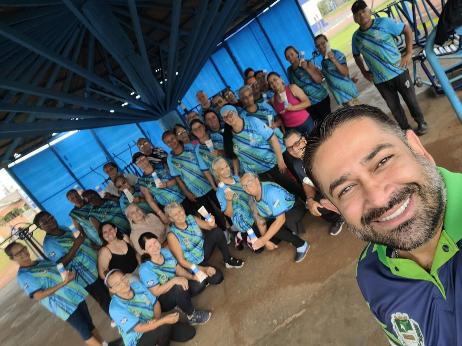 Secretaria de Saúde realizou uma breve palestra sobre a importância da atividade física na prevenção das doenças cardiovasculares e promoção de uma vida saudável. Foi promovida também a distribuição de protetor solar aos idosos e orientação sobre a prevenção do câncer de pele.