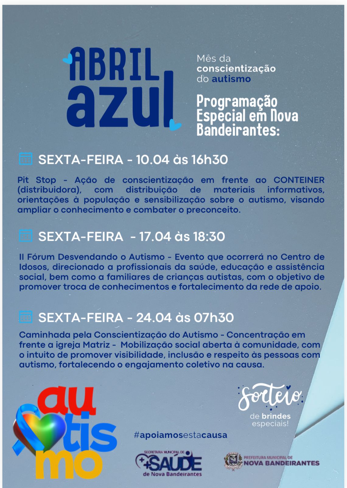 A Secretaria Municipal de Saúde de Nortelândia reforça, nesta data tão importante, o compromisso com a inclusão, o respeito e a valorização das pessoas com Transtorno do Espectro Autista (TEA).