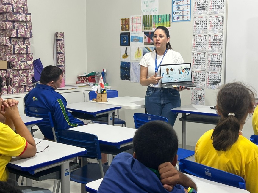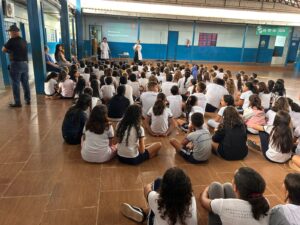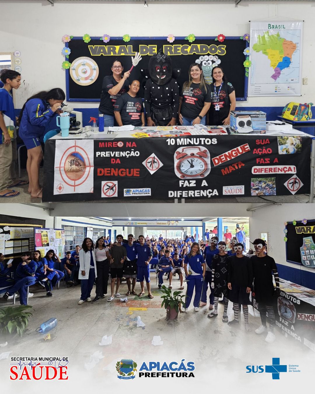 A Escola Pestalozzi e a Escola Municipal Guarujá receberam, nesta segunda-feira (1º), uma palestra educativa sobre prevenção à dengue, realizada pela enfermeira Fernanda, da ESF Guarujá. A ação integrou as atividades do projeto Recicla Verdinho, que incentiva cuidados com o meio ambiente, alimentação saudável e educação financeira e social.