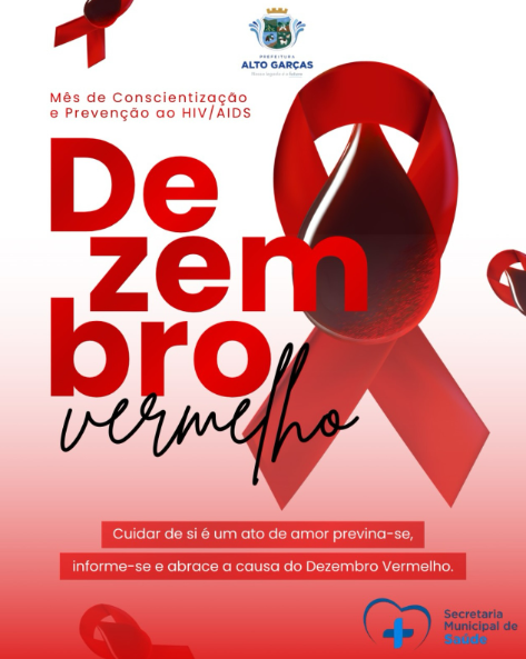 A Prefeitura de Alto Garças, por meio da Secretaria Municipal de Saúde, apoia o Dezembro Vermelho, mês de conscientização e prevenção ao HIV/AIDS. Reforça-se a importância da informação, do cuidado e do combate ao preconceito.