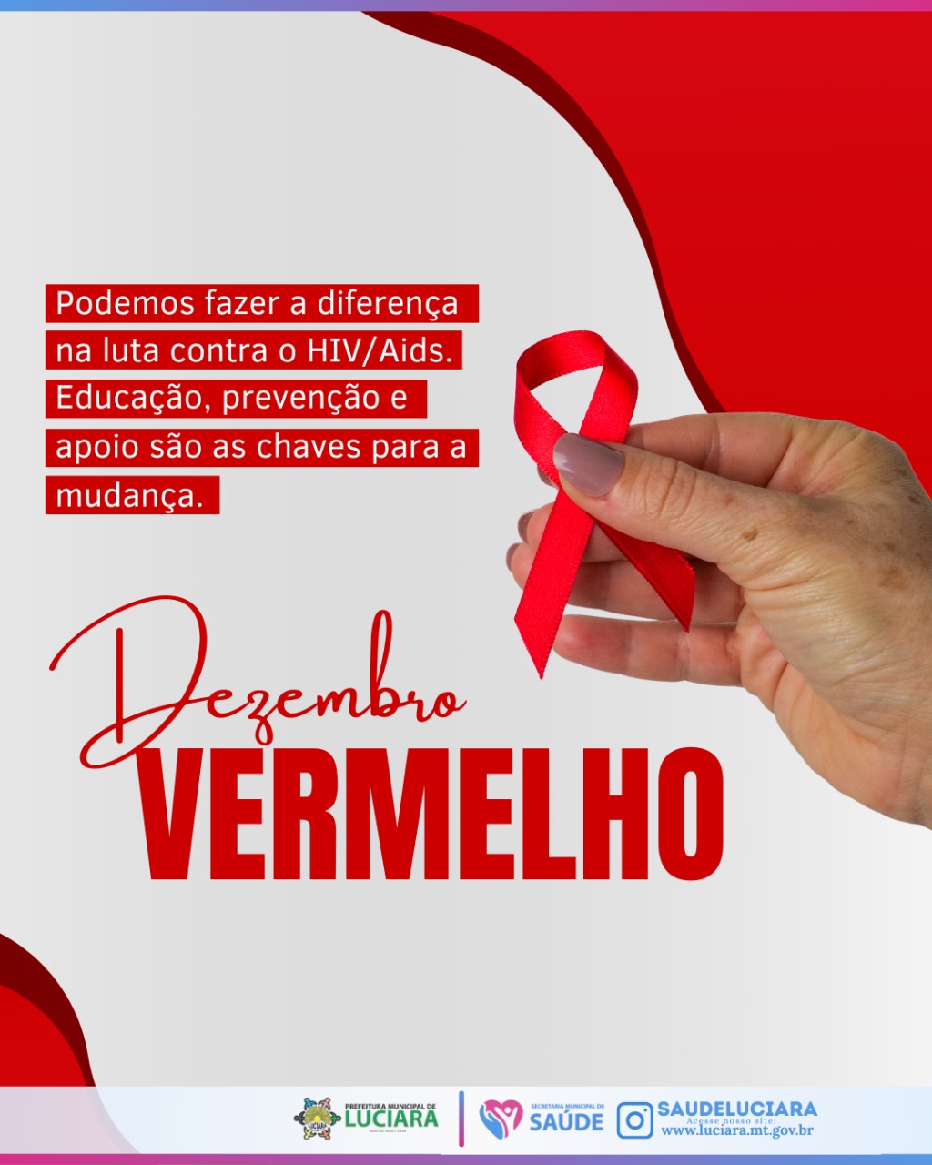 A Secretaria Municipal de Saúde de Luciara destaca o Dezembro Vermelho como um período de conscientização sobre HIV/Aids. Procure a unidade de saúde para orientações, testagem e acompanhamento.