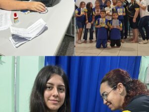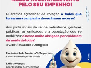 A Secretaria Municipal de Saúde, por meio das equipes da Atenção Básica, realizou uma intensa campanha de vacinação nas escolas, levando a multivacinação e a vacina contra o sarampo às crianças e adolescentes. A ação teve como objetivo atualizar as carteirinhas de vacina e reforçar a proteção da nossa população escolar. A Secretaria agradece a parceria das escolas estaduais e municipais, fundamentais para o sucesso dessa importante iniciativa.