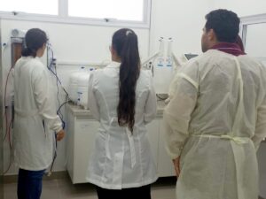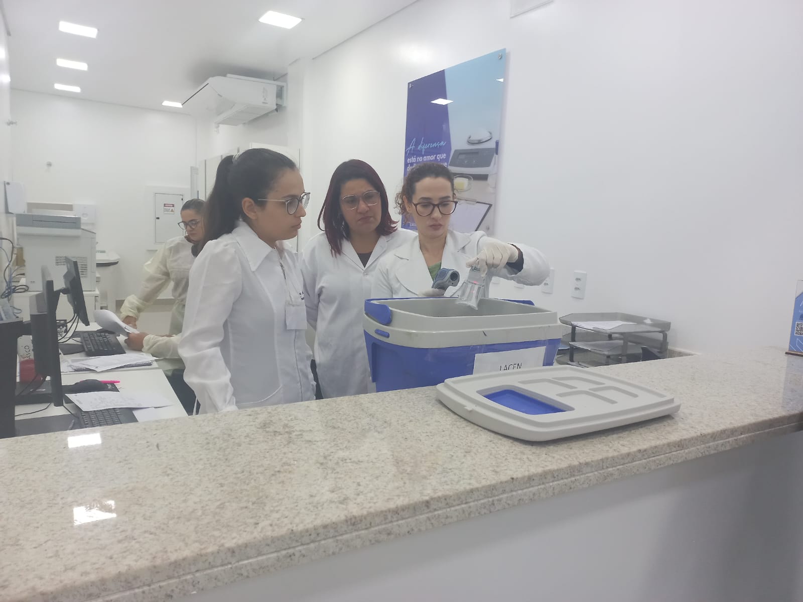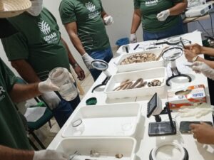Nova farmacêutica SAE CTA e laboratório de água fazendo capacitação no Lacen em Cuiabá.