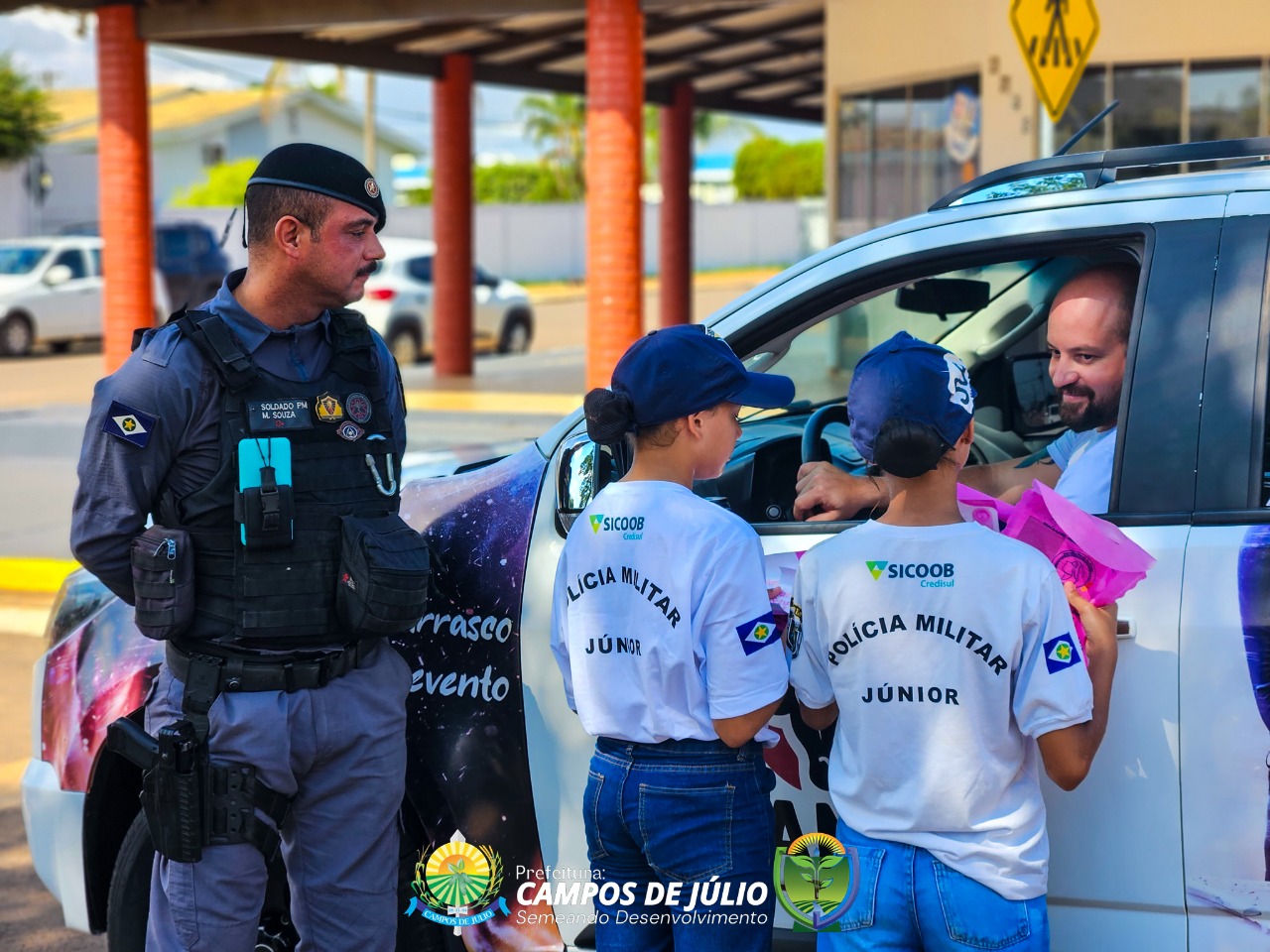 Na última sexta-feira, dia 31, a Secretaria Municipal de Assistência e Desenvolvimento Social e a Secretaria de Saúde, com apoio da Polícia Militar e dos integrantes do PM Junior, realizaram uma blitz educativa sobre o Outubro Rosa. A ação ocorreu em dois períodos, manhã e tarde, com entrega de panfletos contendo informações e orientações sobre a importância da prevenção ao câncer de mama e do colo do útero. As secretárias Marla Parmeggiani e Danyela Guimarães participaram ao lado da 1ª Tenente da Polícia Militar e demais policiais militares, reforçando o compromisso com a saúde e o bem-estar das mulheres.