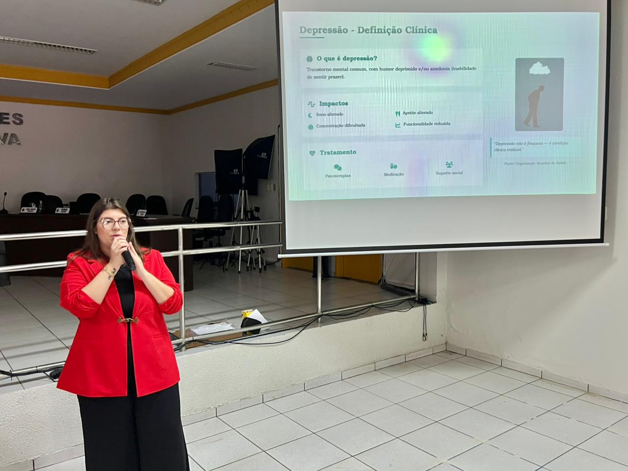Com o objetivo de fortalecer o cuidado emocional e promover bem-estar entre os profissionais que atuam na linha de frente do sistema de saúde, a Prefeitura de Colíder, por meio da Secretaria Municipal de Saúde, realizou nesta sexta-feira (14), na Câmara Municipal, a palestra “Saúde Mental e Cuidado com Quem Cuida”.