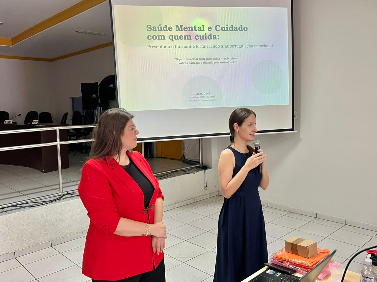 O encontro foi ministrado pela psicóloga Bianca Nátaly Orúe de Figueiredo (CRP 18/7975) e abordou temas relevantes como prevenção do burnout, estratégias de autorregulação emocional e a importância da atuação multidisciplinar dentro das equipes de saúde.