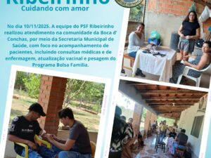 Nova Bandeirantes – “Projeto Cuidando de você e do seu bebê”. Em Japuranã, a equipe da Atenção Básica realizou o acompanhamento do recém-nascido e da puérpera, além da entrega dos kits puerperais. Essa é uma ação da Secretaria de Saúde, por meio do projeto “Cuidando de Você e do Seu Bebê”, que busca fortalecer o cuidado no pós-parto, apoiar as mães nesse momento tão importante e garantir um início de vida mais saudável e seguro para o bebê.