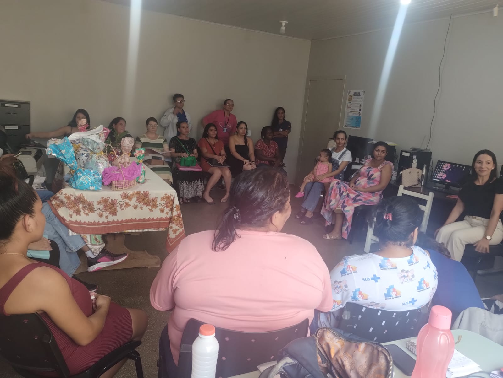 Em 10/11 as Unidades de Saúde da Família XIV E XV, realizaram um Grupo de Gestantes com a participação da Psicóloga Perinatal, Rosane Cípola. Foi realizado dinâmica com as gestantes e acompanhantes, sobre o tema Ansiedade Gestacional e Puerperal. A equipe de saúde organizou brindes para todas as gestantes, e um coffee break com frutas e suco natural.