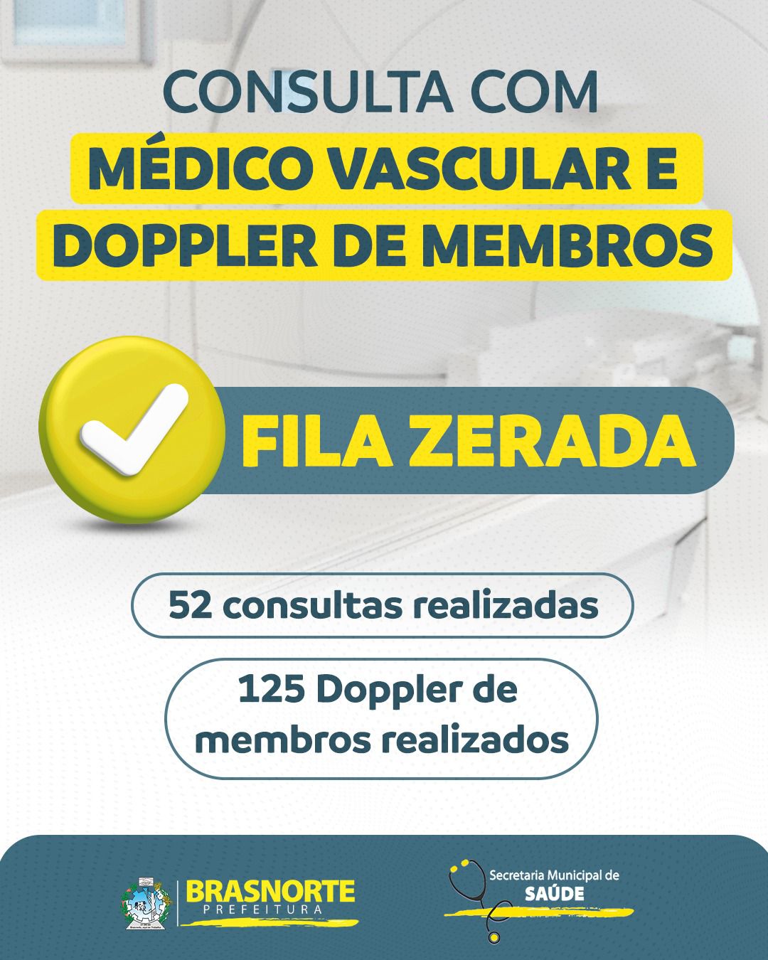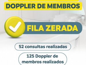 Estão sendo realizadas 52 consultas com o médico vascular e 125 exames de Doppler de membros, garantindo mais saúde e atendimento de qualidade à população de Brasnorte. Agradecimento ao apoio do Hospital Municipal, pela disponibilização do local e da equipe de apoio, e à equipe da Regulação, pela organização do mutirão.