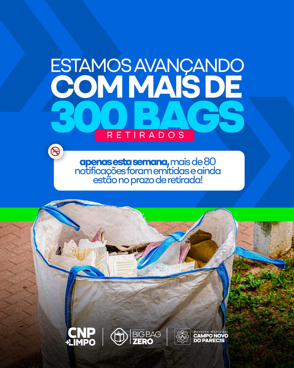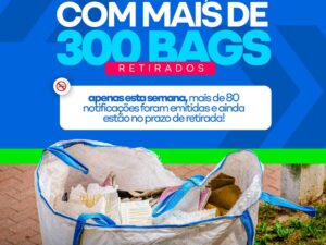 A campanha Big Bag Zero segue avançando em Campo Novo do Parecis! Mais de 300 bags já foram retirados pelos próprios moradores após as notificações emitidas pela Fiscalização. Somente nesta semana, mais de 80 novas notificações foram realizadas, e os responsáveis ainda estão dentro do prazo para retirada. A verificação será feita na próxima semana.