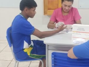 A equipe da Atenção Básica realizou o Programa Saúde na Escola com o tema IST, no qual foram realizados testes rápidos nos estudantes do segundo e terceiro ano, mediante autorização dos pais. Essa ação é realizada anualmente e demonstra o compromisso da escola e da saúde em promover prevenção, orientação e cuidados para os adolescentes, fortalecendo a educação em saúde e a detecção precoce de infecções.