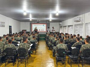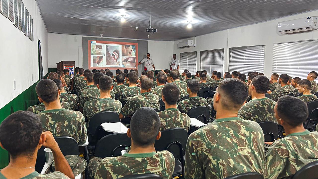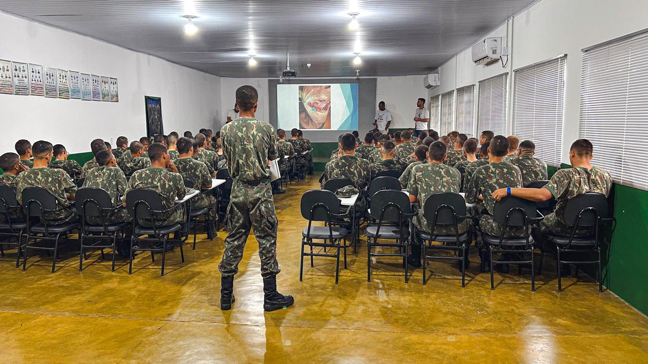 A Equipe de Saúde Bucal da Secretaria Municipal de Saúde esteve no Tiro de Guerra de Alta Floresta (TG) para uma ação voltada à prevenção do câncer de boca com os jovens alistados. Durante a atividade, os dentistas levaram orientações sobre fatores de risco, sinais e sintomas, formas de prevenção e a importância do diagnóstico precoce, reforçando a necessidade do autocuidado e da atenção às mudanças na cavidade bucal. A iniciativa integra as ações educativas realizadas ao longo do ano, contribuindo para a formação de jovens mais conscientes sobre sua saúde e fortalecendo a prevenção do câncer de boca no município.