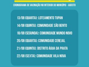 No último sábado, 02 de agosto, a Secretaria Municipal de Saúde de Campos de Júlio promoveu o Dia D da Campanha de Vacinação contra a Influenza, com grande mobilização da equipe da Sala de Vacina. Seguindo a orientação do Ministério da Saúde, a imunização contra a gripe está liberada para toda a população a partir dos 6 meses de idade, sem necessidade de pertencer a grupos prioritários.
