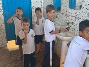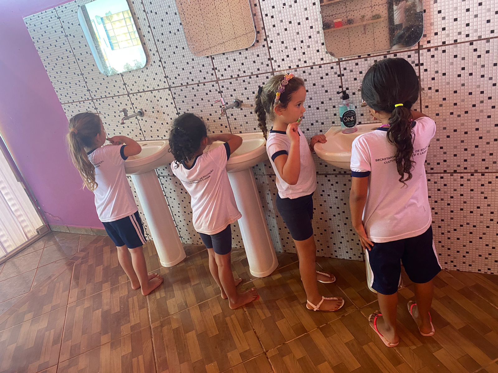 Realizou-se um momento especial de cuidado e aprendizado na Escola Rural Planalto. As crianças participaram de uma atividade de orientação sobre saúde bucal, onde aprenderam, de forma lúdica e prática, a importância de manter os dentes limpos e saudáveis. Com o apoio da equipe de saúde, foi realizada a escovação supervisionada, garantindo que cada passo da higiene bucal fosse feito corretamente. Além de promover sorrisos mais bonitos, ações como esta ajudam a prevenir cáries e outros problemas bucais, contribuindo para a saúde e o bem-estar das crianças.