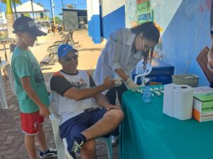 Durante a ação, além da vacina contra a Influenza, foram atualizados cartões de vacina e aplicadas outras doses de rotina. Ao todo, foram administradas 260 doses, sendo: Influenza (209), dT (27), Hepatite B (9), HPV (2), Tríplice Viral (5), Febre Amarela (1), Covid-19 (4), Pneumo 10 (1) e Pneumo 23 (1).