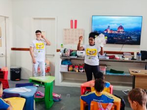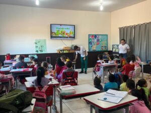 Turma de 9 anos – Orientações com micromodelos sobre a função dos dentes na mastigação; Turma de 10 anos – Exibição do vídeo “Cárie Dental Trailer (cárie dentária)” do Dr. Wagner Munhoz, com explicações sobre o surgimento da cárie e como preveni-la.