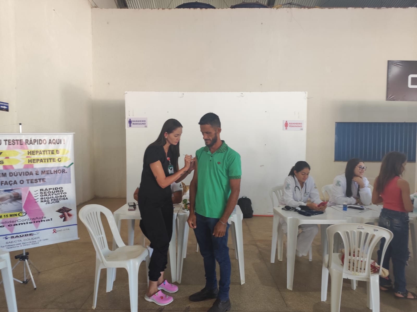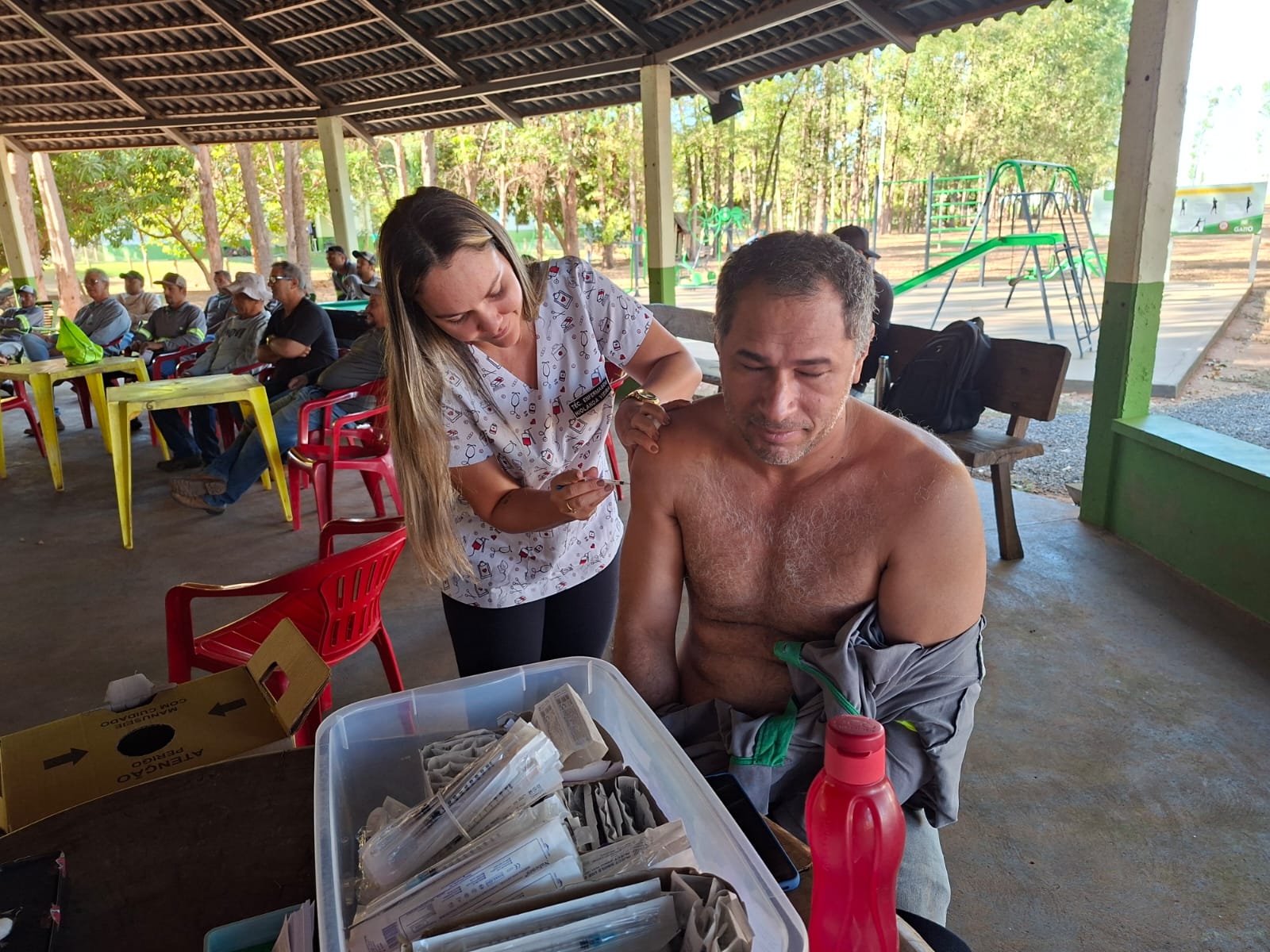 A Secretaria Municipal de Saúde, por meio da equipe de atendimento rural, realizou uma ação na Fazenda Santa Carmem. O fisioterapeuta Giovane, levou informações importantes sobre a postura e como melhorar no ambiente de trabalho para reduzir danos a saúde. Além disso foram realizados testes rápidos, vacinas e verificação de pressão arterial e glicemia capilar.