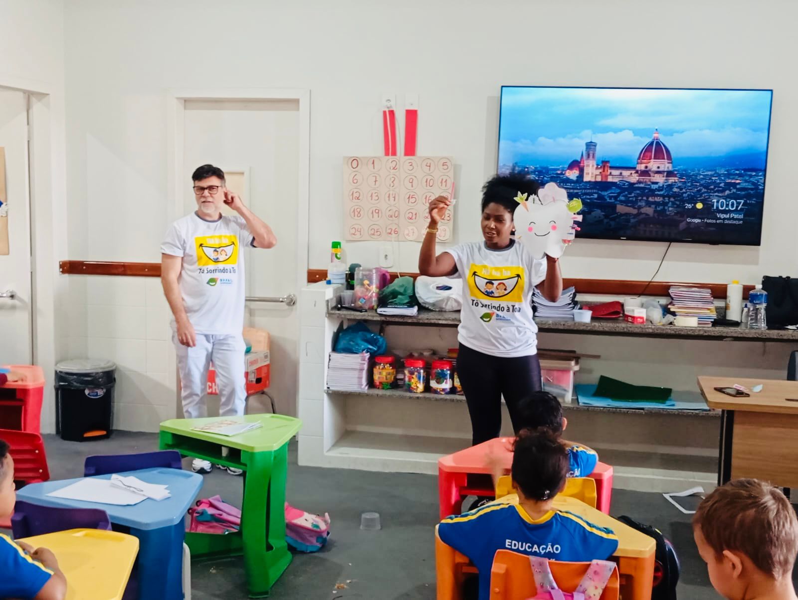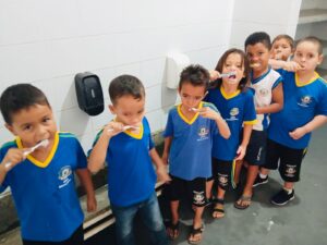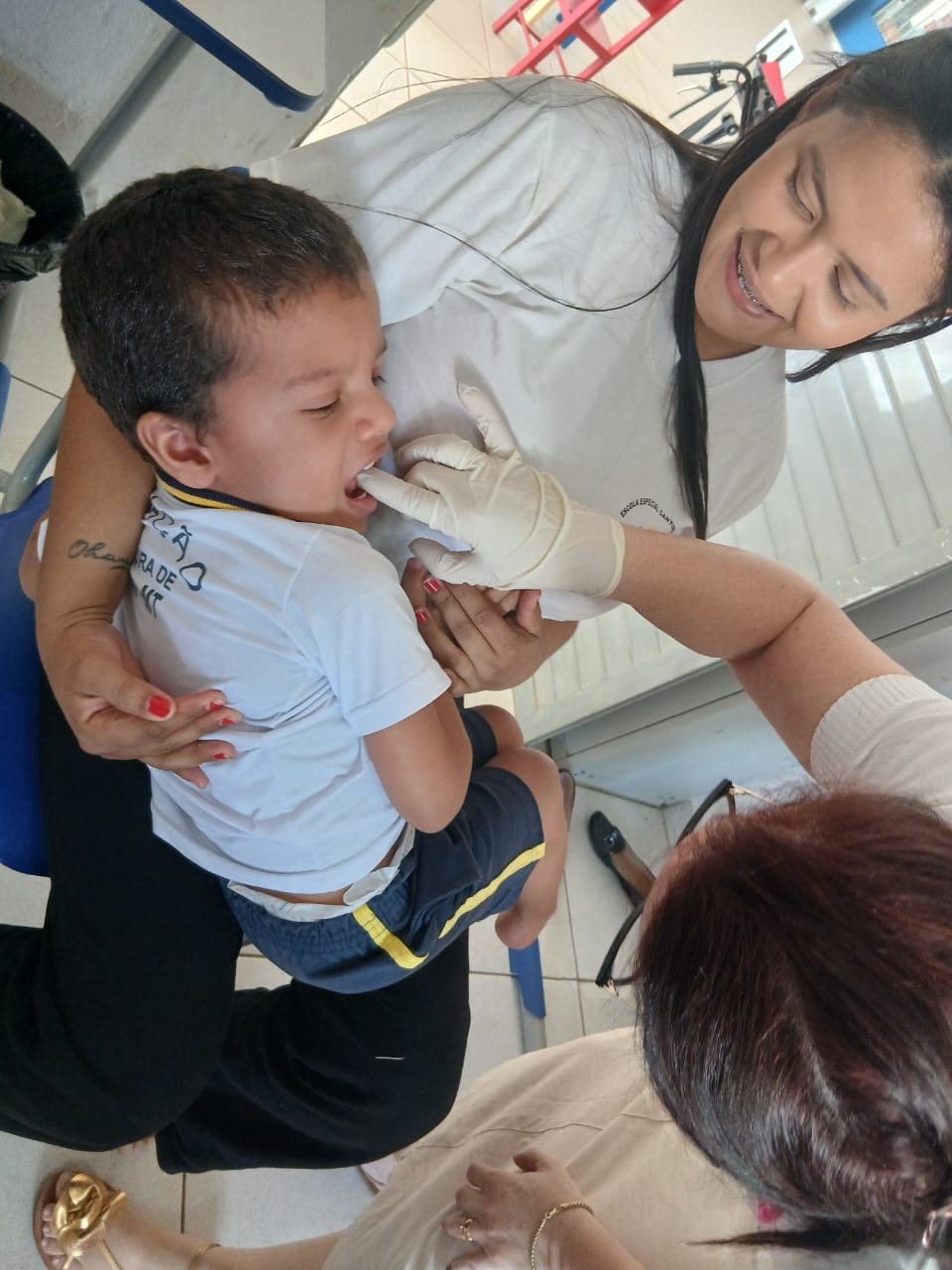 PSE na Creche Tia Eliza. Dia de muita alegria e aprendizado! As crianças participaram do momento de estórias com a Tia Nilza e tio Celso, receberam kits de higiene bucal e realizaram escovação supervisionada para cuidar bem do sorriso. E para deixar tudo ainda mais animado, teve música e vídeos,