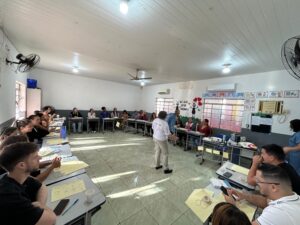 Durante a manhã, profissionais da Atenção Básica de diversos municípios do Médio Araguaia acompanharam a aula magna de forma online, diretamente do Escritório Regional de Saúde de Água Boa. O evento contou com falas de representantes da ESP-MT, da Secretaria de Estado de Saúde (SES-MT) e da Fiocruz Pernambuco, além de especialistas em saúde mental e práticas integrativas.