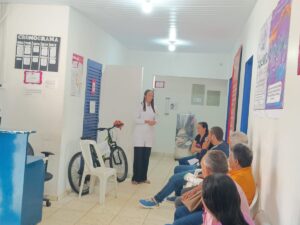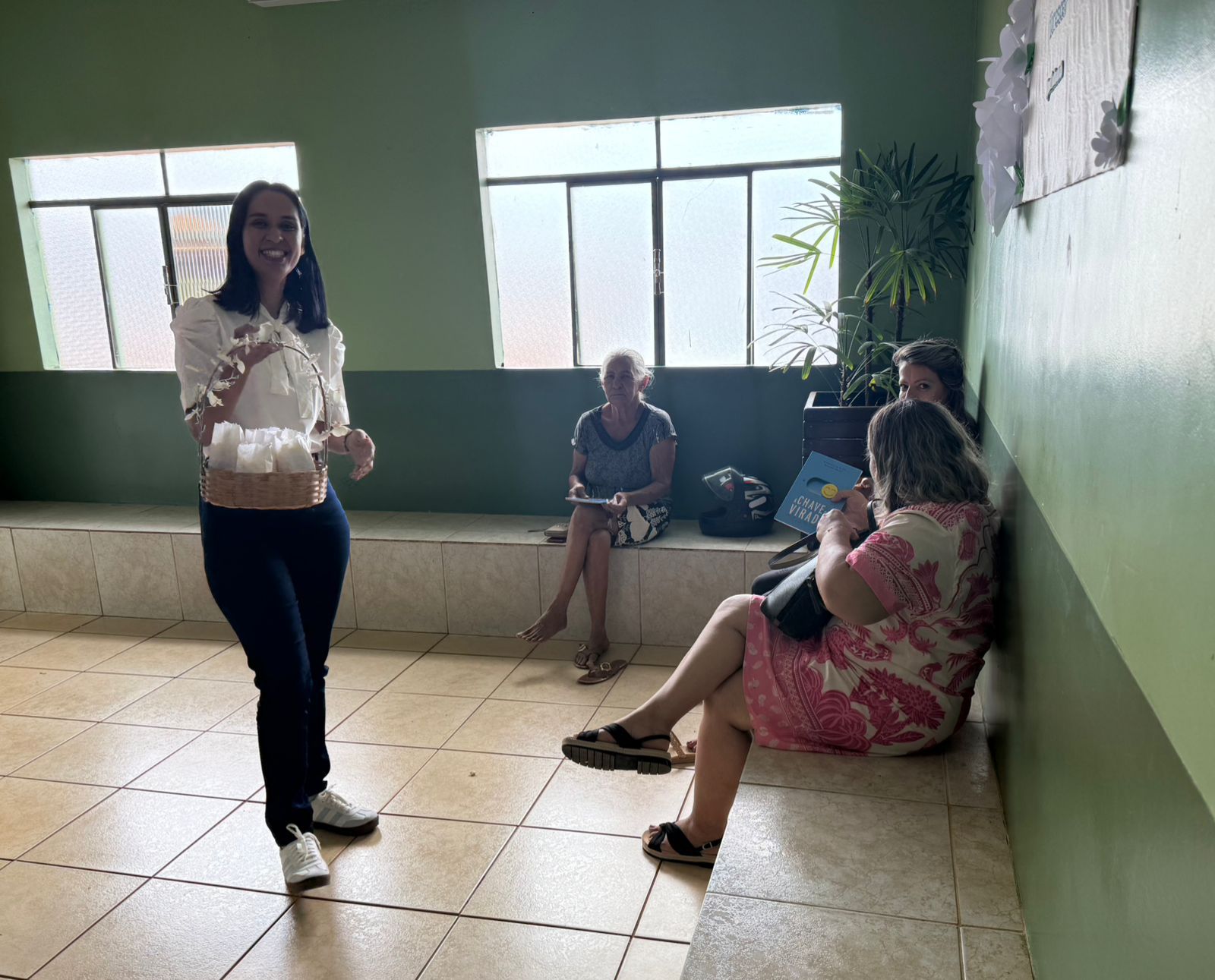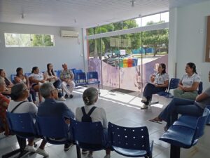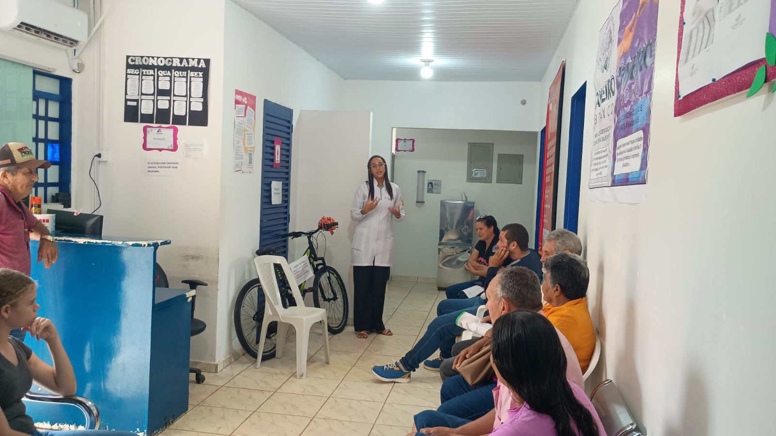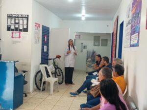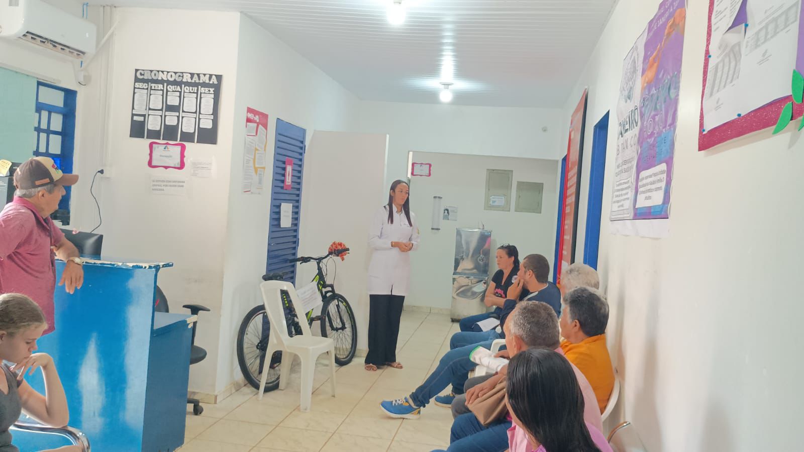 Usuários que aguardavam atendimento na Secretaria Municipal de Saúde, participaram de um momento especial com a psicóloga Marilena , onde reforçou a importância de falar sobre suas emoções e buscar ajuda quando necessário.