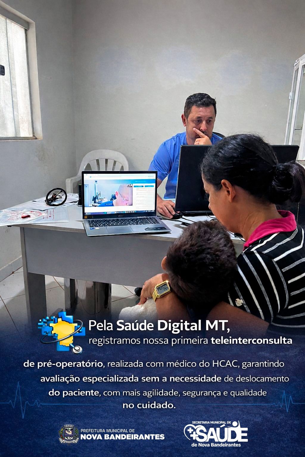 Pela Saúde Digital MT, registramos nossa primeira teleinterconsulta de pré-operatório, realizada com médico do HCAC, garantindo avaliação especializada sem a necessidade de deslocamento do paciente, com mais agilidade, segurança e qualidade no cuidado.