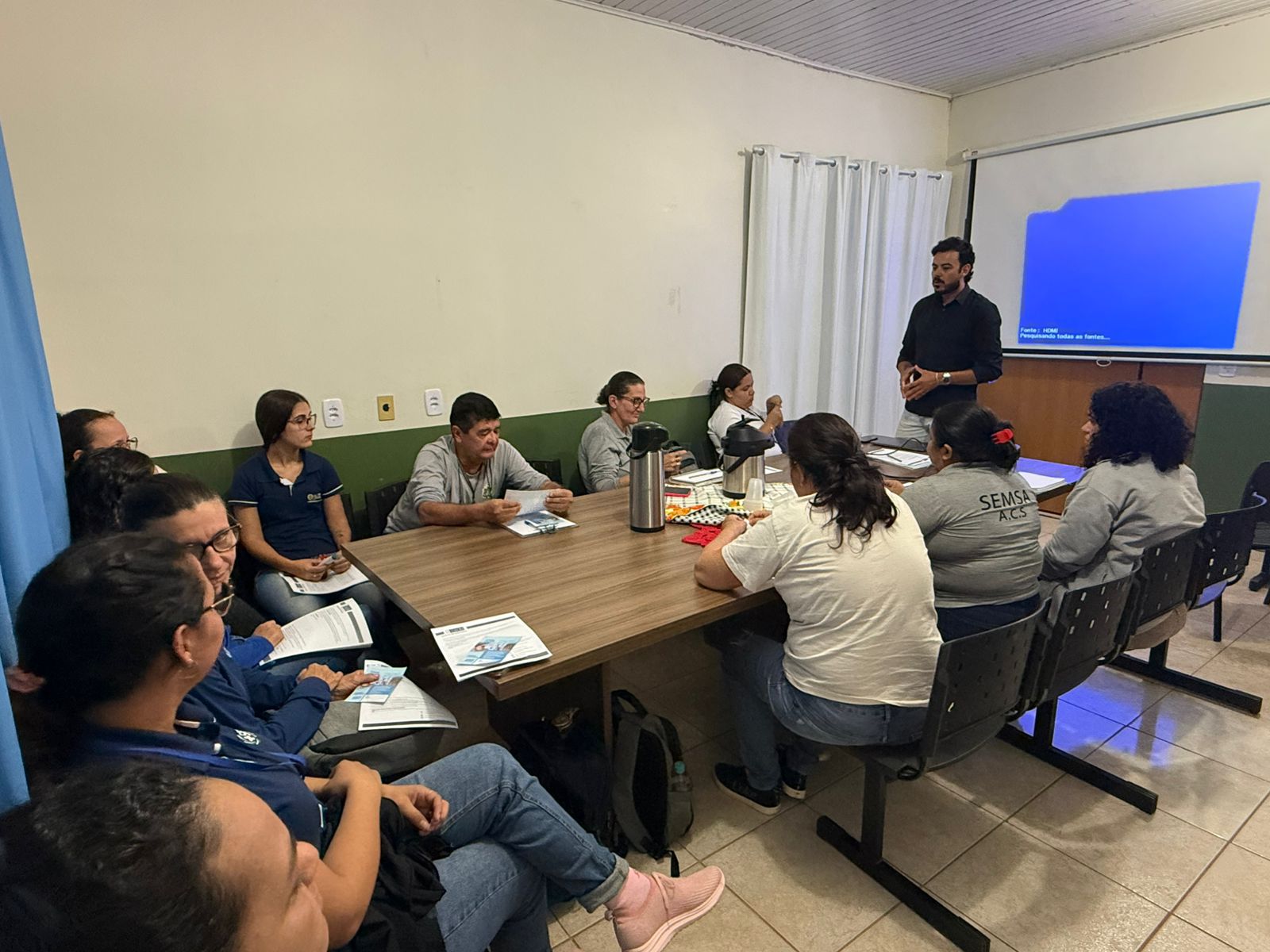 A Secretaria Municipal de Saúde realizou reunião com a equipe da Vigilância Ambiental para dialogar sobre o processo de trabalho, levantar necessidades da equipe e tratar de questões internas, com foco no fortalecimento das ações e na melhoria das condições de trabalho.
