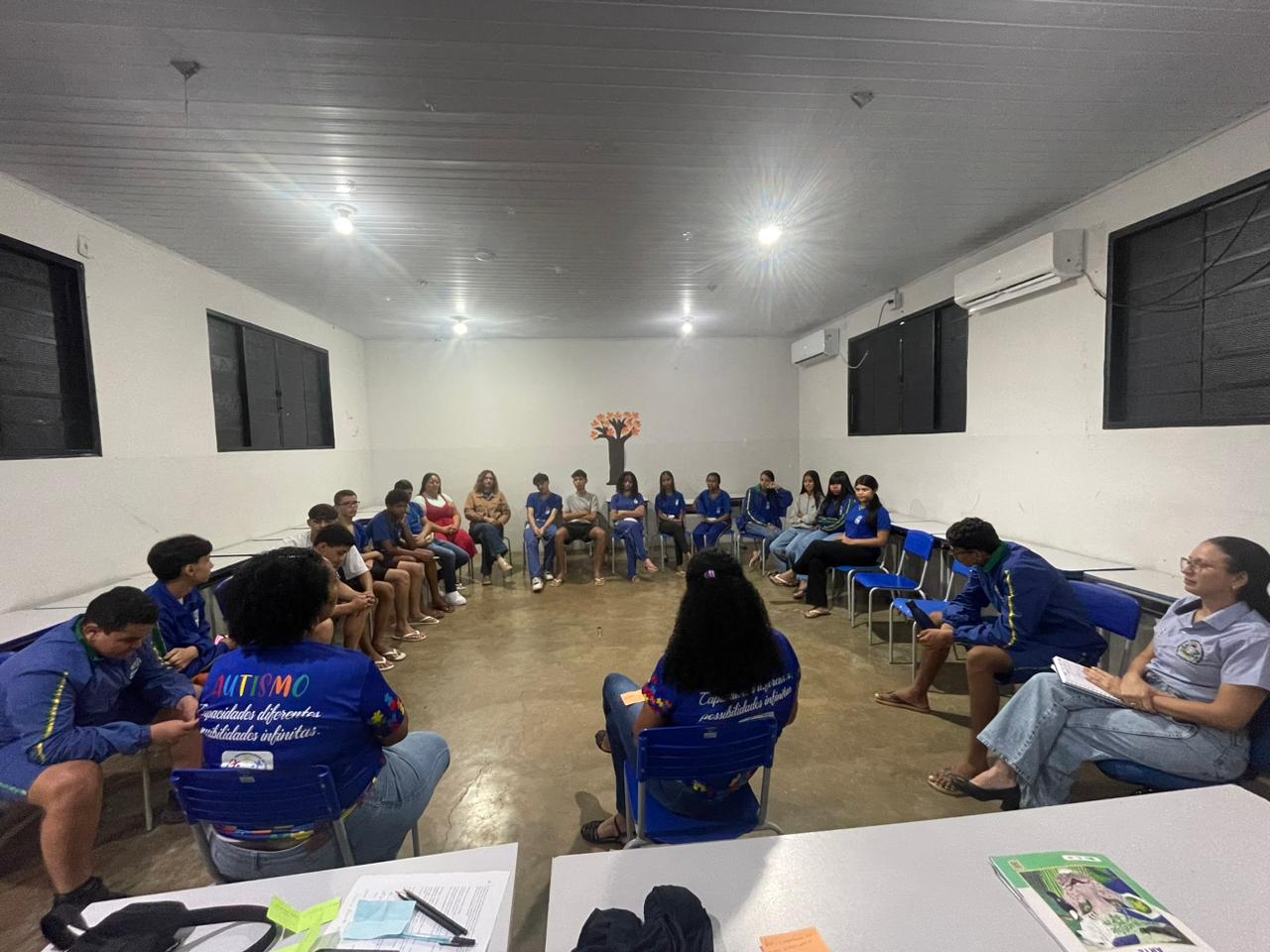 A equipe multidisciplinar do CAPS promoveu uma roda de conversa com os alunos da Escola Estadual de Ensino Médio Presidente Tancredo de Almeida Neves, com o tema “Conhecer para acolher e incluir”. Durante o encontro, os estudantes participaram ativamente, contribuindo com reflexões sobre o Transtorno do Espectro Autista (TEA) e compartilhando estratégias de cuidado e inclusão. Os profissionais do CAPS conduziram uma dinâmica reflexiva e acolhedora, proporcionando à comunidade escolar um espaço de escuta, troca de experiências e fortalecimento de vínculos, promovendo momentos significativos de aprendizado, empatia e afeto.