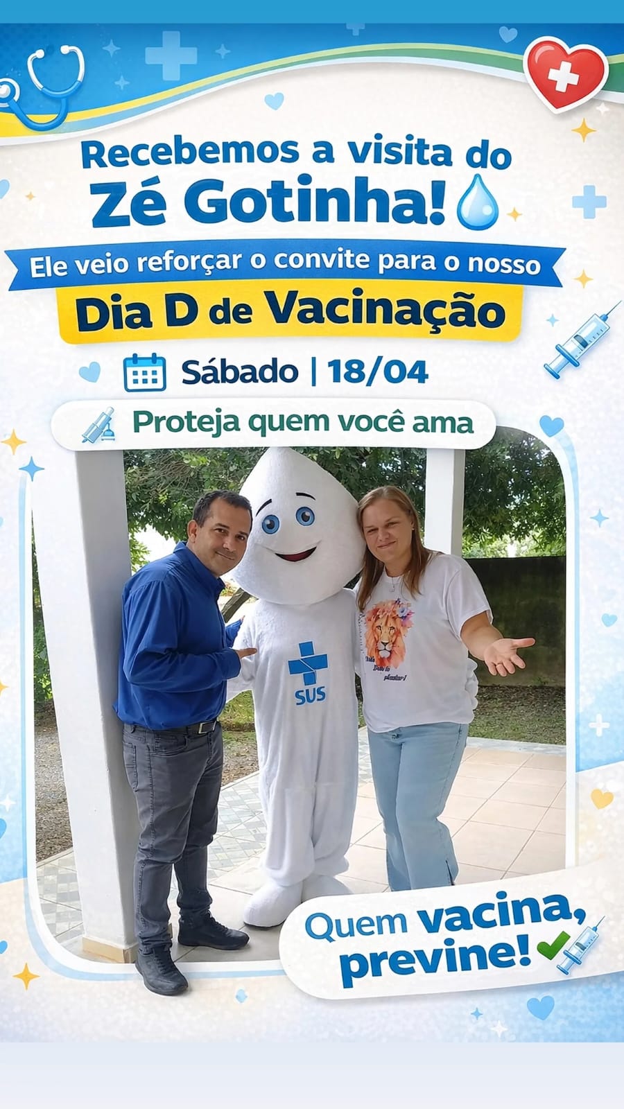Em Campo Novo do Parecis, o Zé Gotinha está chamando atenção da população na feira e levando educação permanente para o SIM, vacina e vida!