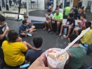 Grupo terapêutico de mulheres, realizados semanalmente, contou-se com a participação da nutricionista Karen e da psicóloga Angélica. Nesta semana, foram abordados os temas fome física e fome emocional, tendo sido promovida a reflexão e a troca de experiências entre as participantes. Em seguida, foi realizada uma dinâmica interativa para avaliação do conhecimento sobre alimentação, utilizando-se plaquinhas divertidas, o que proporcionou um momento leve, acolhedor e descontraído durante o atendimento. O resultado foi muito positivo, tendo sido observado grande envolvimento das participantes — elas se divertiram bastante, e a equipe também.