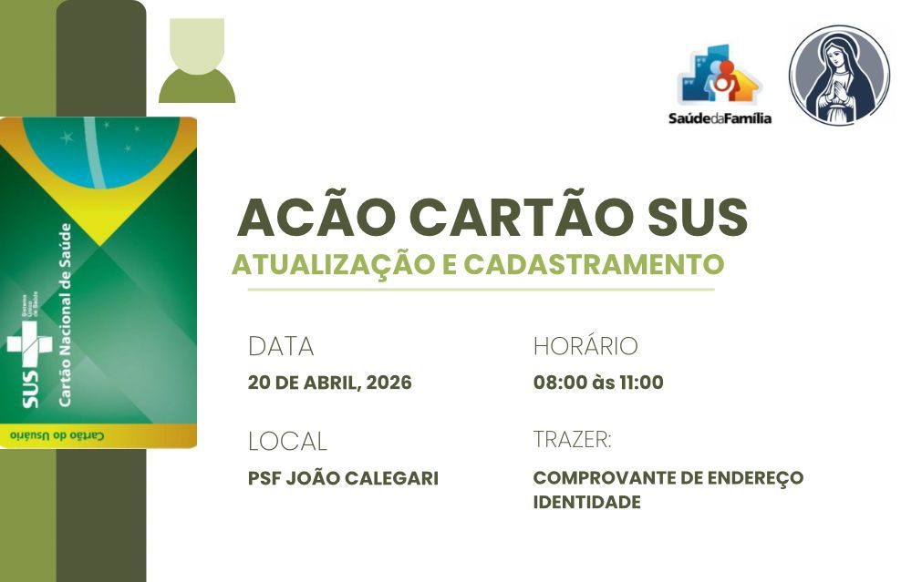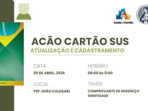 AÇÃO CARTÃO SUS. Um dia dedicado ao cuidado e à garantia de acesso aos serviços de saúde. A ação do Cartão SUS foi realizada para atender a população com atualização de dados cadastrais e emissão de cartões, facilitando o acesso aos atendimentos e fortalecendo a organização da saúde no município.