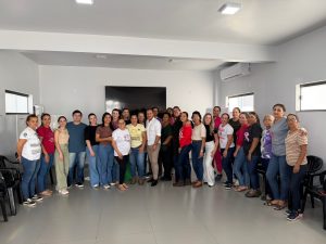 Equipe técnica da Secretaria de Saúde, juntamente com a secretária Minéia, realizou reunião de alinhamento na UBS do Assentamento Paraíso do Norte, com o objetivo de fortalecer a organização dos serviços, alinhar fluxos de atendimento e qualificar a assistência prestada à população.