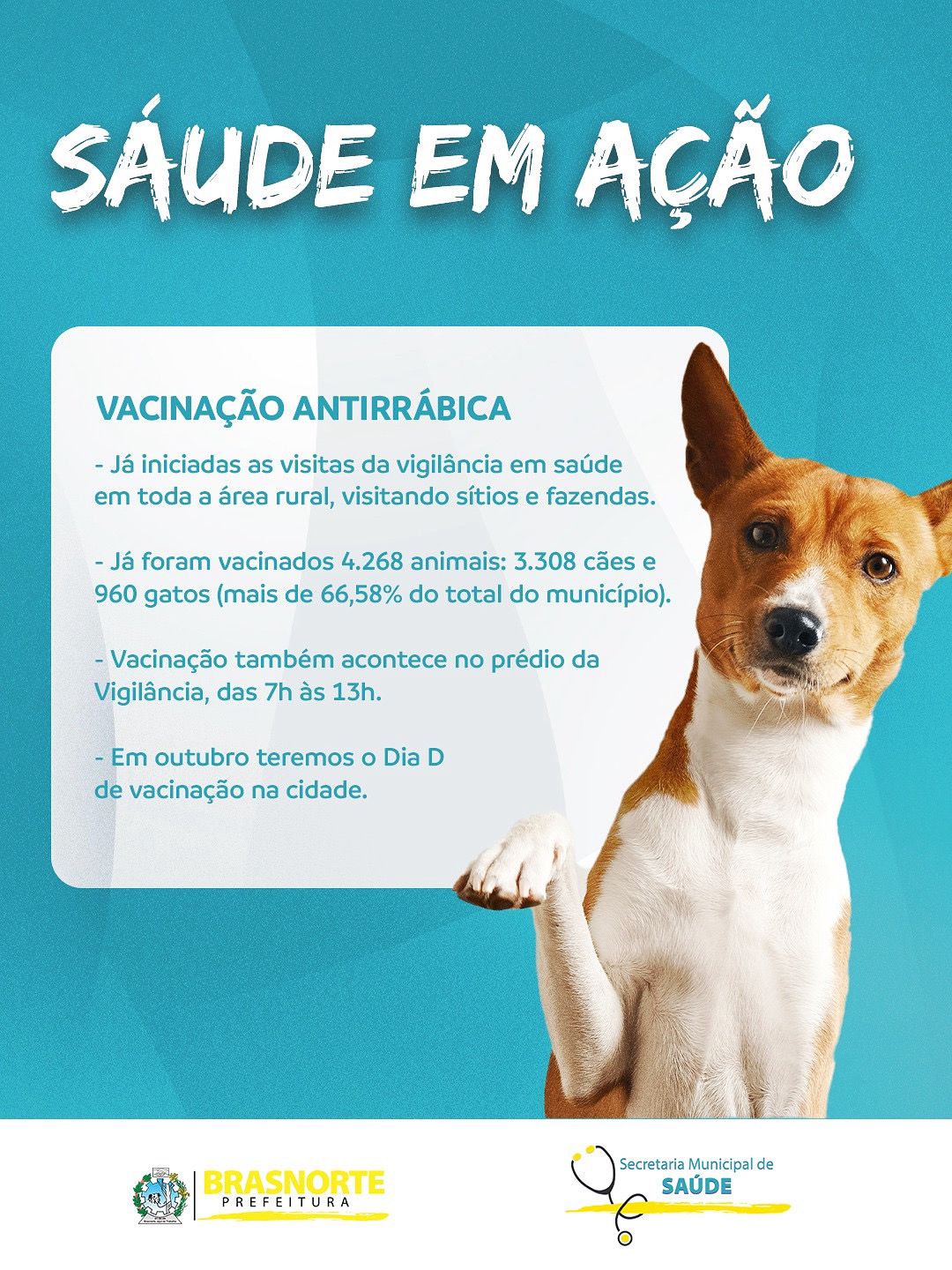 A equipe da Vigilância em Saúde já está percorrendo toda a zona rural de Brasnorte, visitando sítios e fazendas, garantindo a proteção dos nossos cães e gatos contra a raiva. Até agora, 4.268 animais já foram vacinados, sendo 3.308 cães e 960 gatos, alcançando mais de 66% do município.