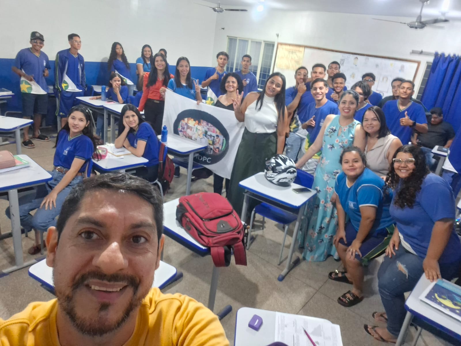 Setembro Amarelo na Escola Estadual Coronel Ondino. Dia 18/09 ocorreu palestra especial com os estudantes, abordando temas fundamentais para esta fase da vida. Conversou-se sobre a importância de não se cobrar para ser perfeito, aprendendo a reconhecer que erros fazem parte do crescimento e não definem o valor de ninguém. Falou-se também sobre responsabilidade emocional, ensinando que cuidar de si mesmo é prioridade, e que é essencial reconhecer quando se precisa de ajuda. Além disso, reforçou-se os direitos dos adolescentes, incentivando-os a serem protagonistas da própria história e buscarem apoio sempre que necessário.