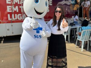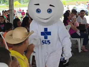 A criançada e o público em geral vibraram com a presença especial do Zé Gotinha e da Maria Gotinha, que agitaram a tarde, levaram alegria e reforçaram, de forma leve e divertida, a importância da vacinação para todas as idades.