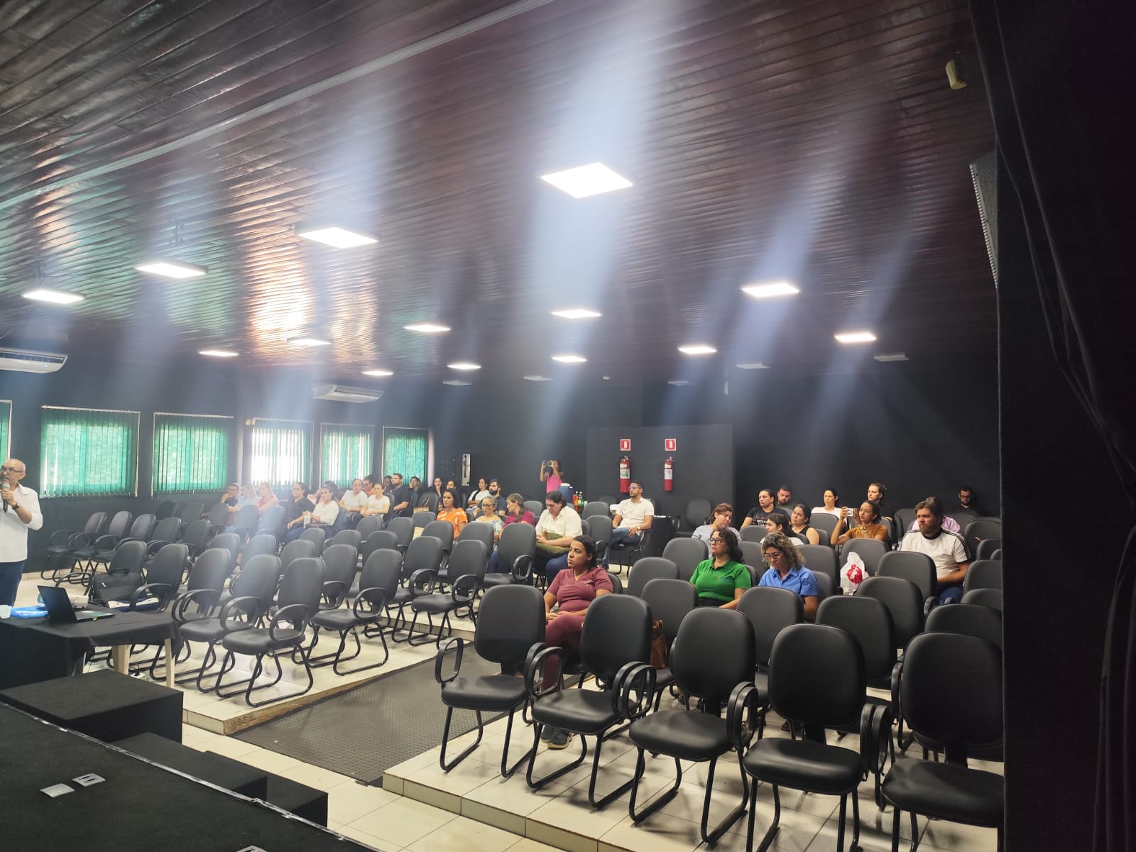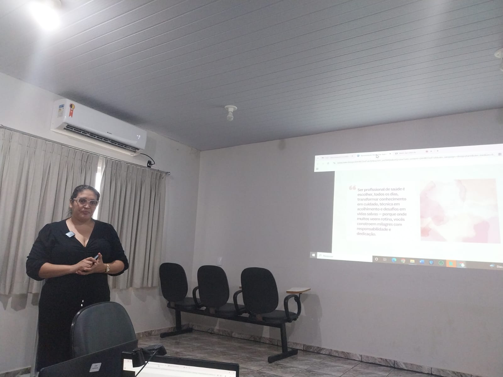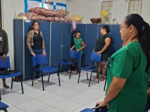Oficina de Acolhimento e Humanização no Atendimento em Saúde Pública, ministrada pela psicóloga, direcionada aos servidores do PSF IV. O encontro proporcionou um espaço de reflexão, escuta qualificada e fortalecimento das práticas humanizadas no cuidado aos usuários, reforçando a importância da empatia, da comunicação efetiva e do respeito no cotidiano dos serviços de saúde.