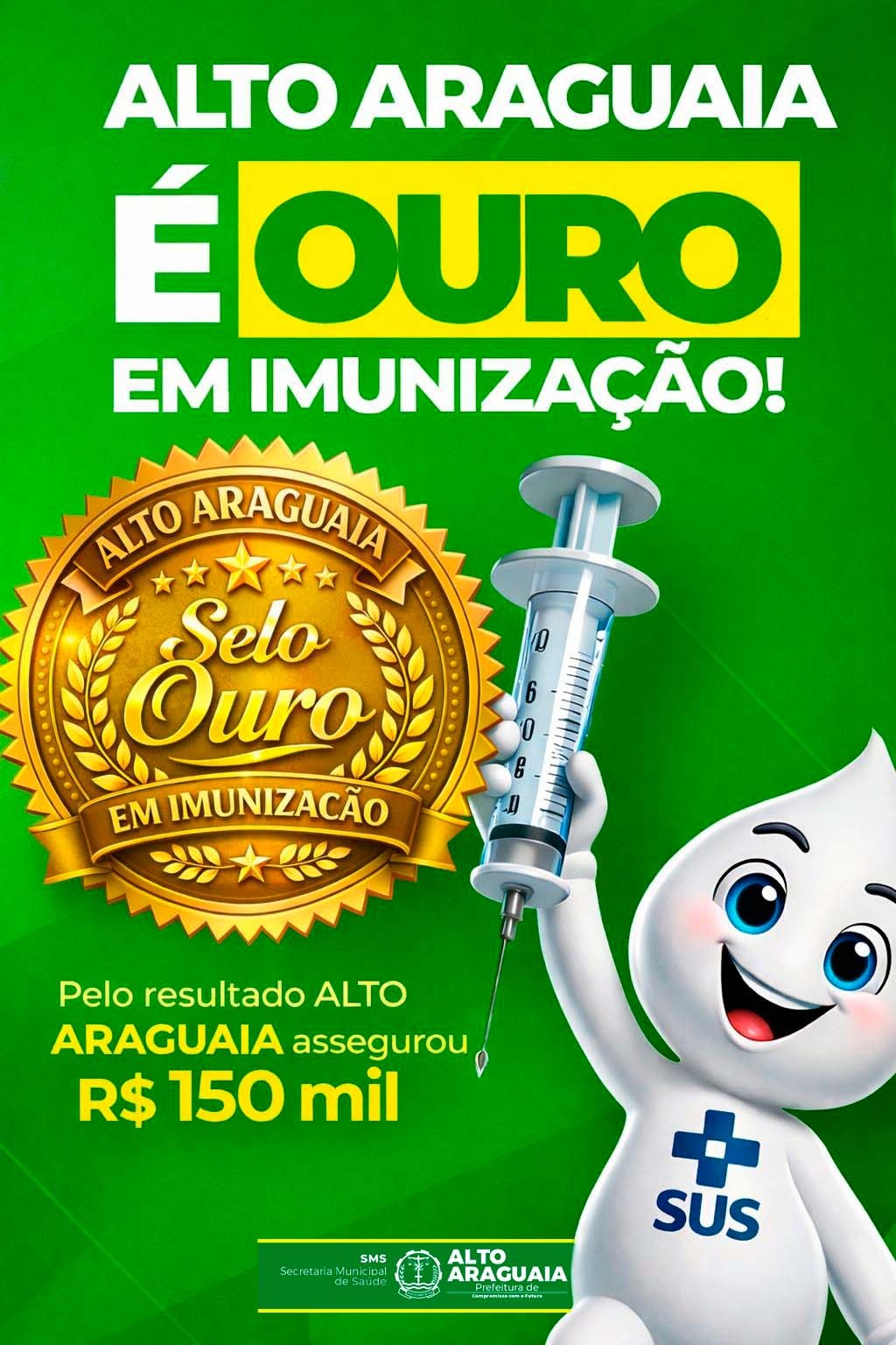 O reconhecimento vem acompanhado de uma premiação no valor de R$ 140.000,00, que reforça e incentiva ainda mais os investimentos na área da saúde, garantindo melhores condições de atendimento e fortalecendo as ações de imunização no município. Parabeniza-se todos os profissionais de saúde, em especial as equipes da Atenção Básica e Imunização, pelo empenho, dedicação e responsabilidade.