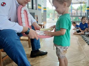 No dia 11/02 foi de cuidar dos sorrisos no Centro de Educação Infantil do Jardim Esperança! O Dr. Luiz Guilherme realizou uma palestra sobre higiene bucal e escovação dental supervisionada, ensinando as crianças a importância de manter os dentinhos sempre limpos e saudáveis. Encerrou-se com a entrega dos kits de higiene bucal, incentivando o cuidado diário desde a infância.