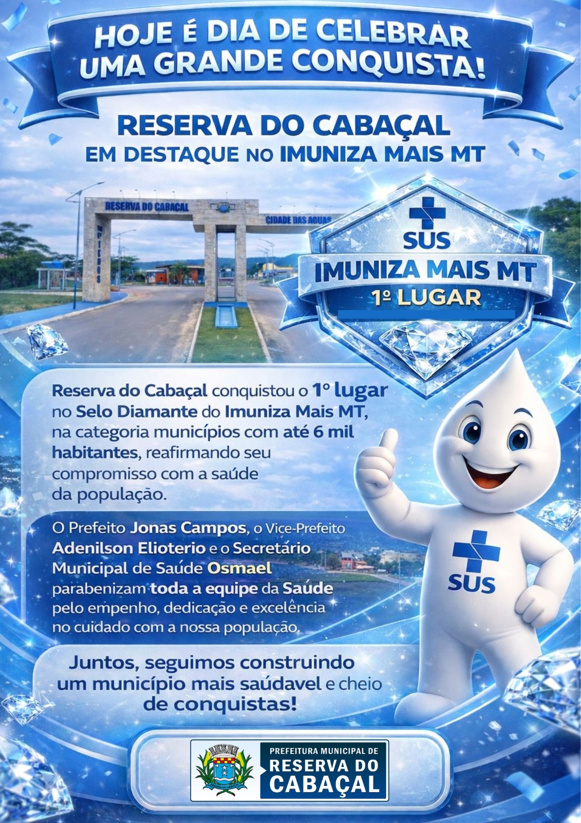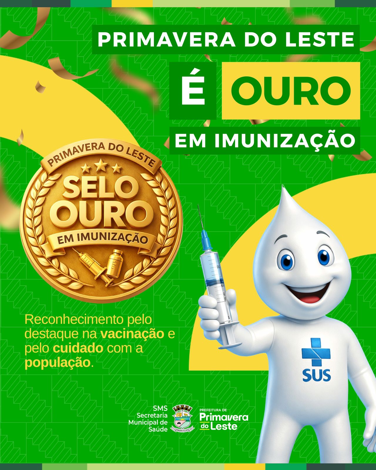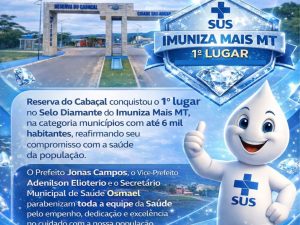 O município foi reconhecido pelo Programa Imuniza Mais MT com o Prêmio Ouro de Imunização, reafirmando o compromisso com a saúde pública e a proteção da população. Esse resultado é reflexo do trabalho dedicado das equipes de saúde, da organização das estratégias de vacinação e da participação ativa da comunidade, que tem feito a sua parte mantendo a caderneta em dia.