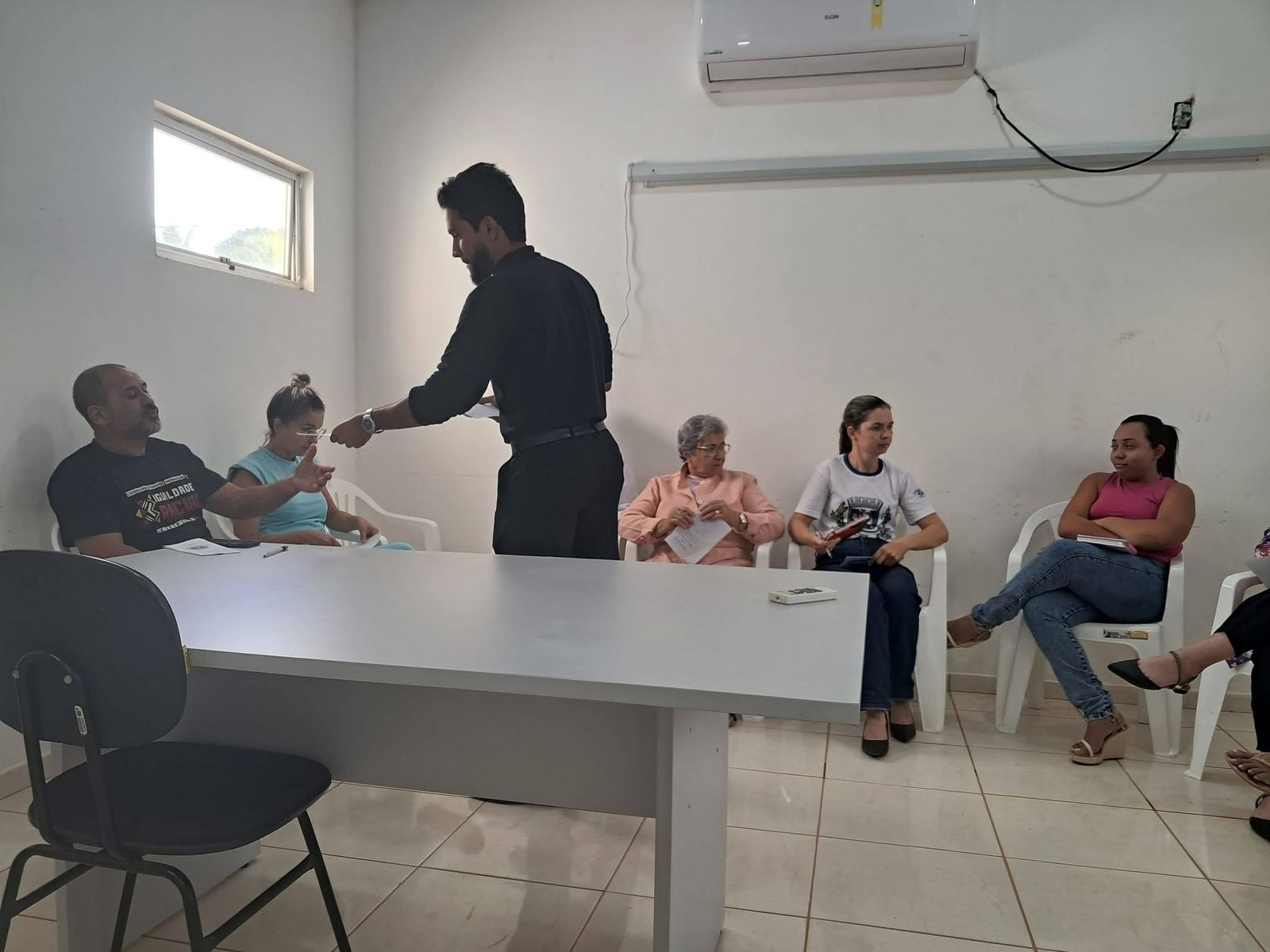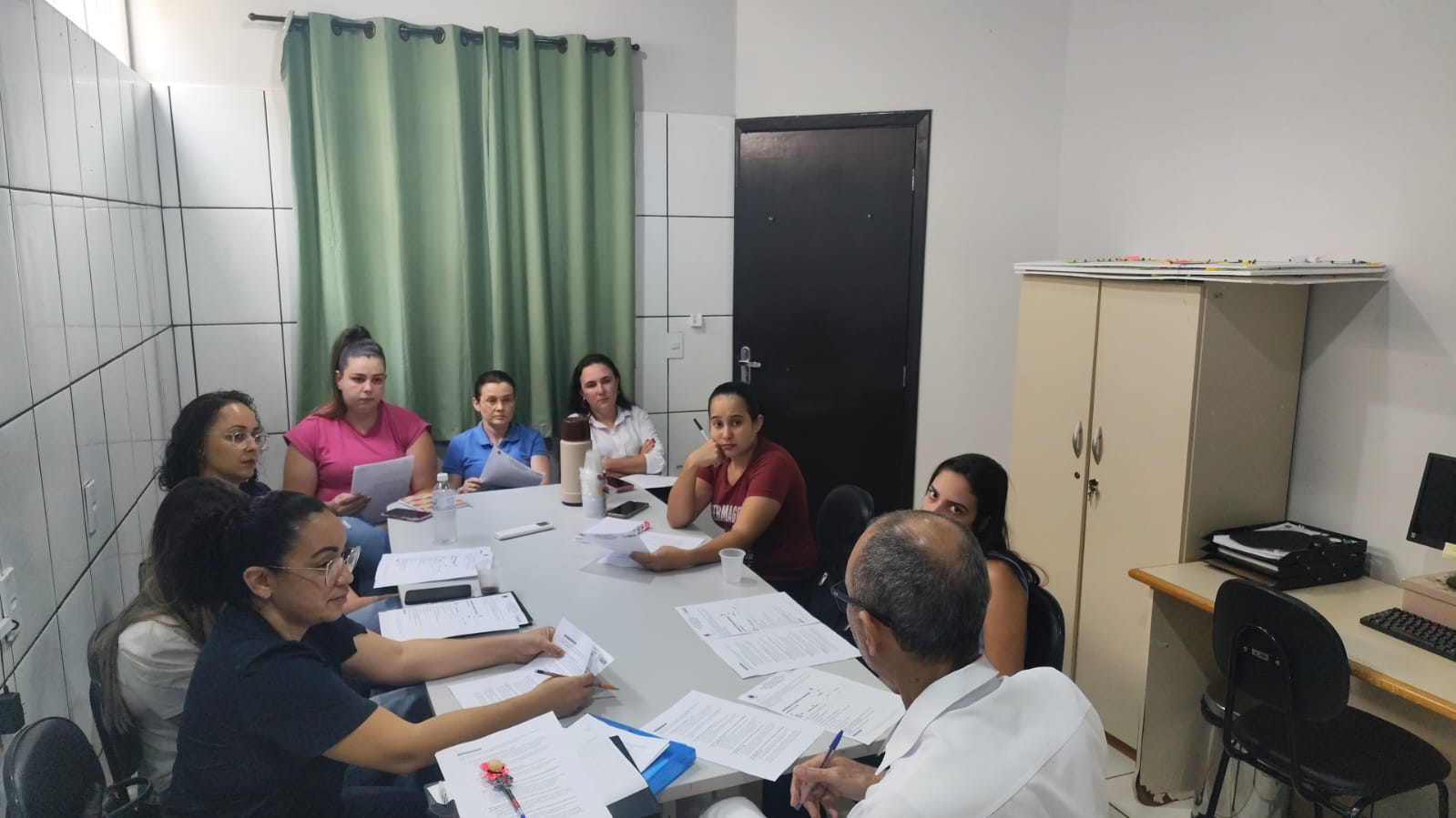 Registro da reunião com equipe da Gestão da Secretaria Municipal de Saúde, em que a servidora Danieli, agora Ouvidora SUS , apresentou o fluxo de funcionamento do canal 136 da Ouvidoria do SUS, destinado ao recebimento de denúncias, reclamações, elogios e solicitações. A ação também foi realizada em todas as unidades de PSF e na unidade especializada, fortalecendo a transparência, a comunicação entre usuários e serviço, e a qualificação dos serviços prestados à população.
