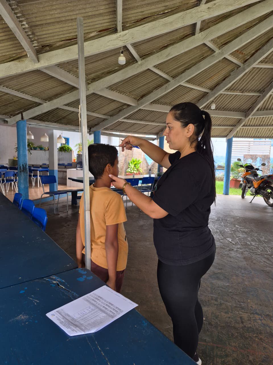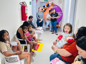 A Nutricionista juntamente com a Agente Comunitária de Saúde (ACS) foi responsável pela aferição de peso e altura das crianças, permitindo a avaliação do estado nutricional por meio dos indicadores antropométricos. Os dados coletados serão utilizados para acompanhamento e, quando necessário, encaminhamento para atendimento individualizado na unidade de saúde.