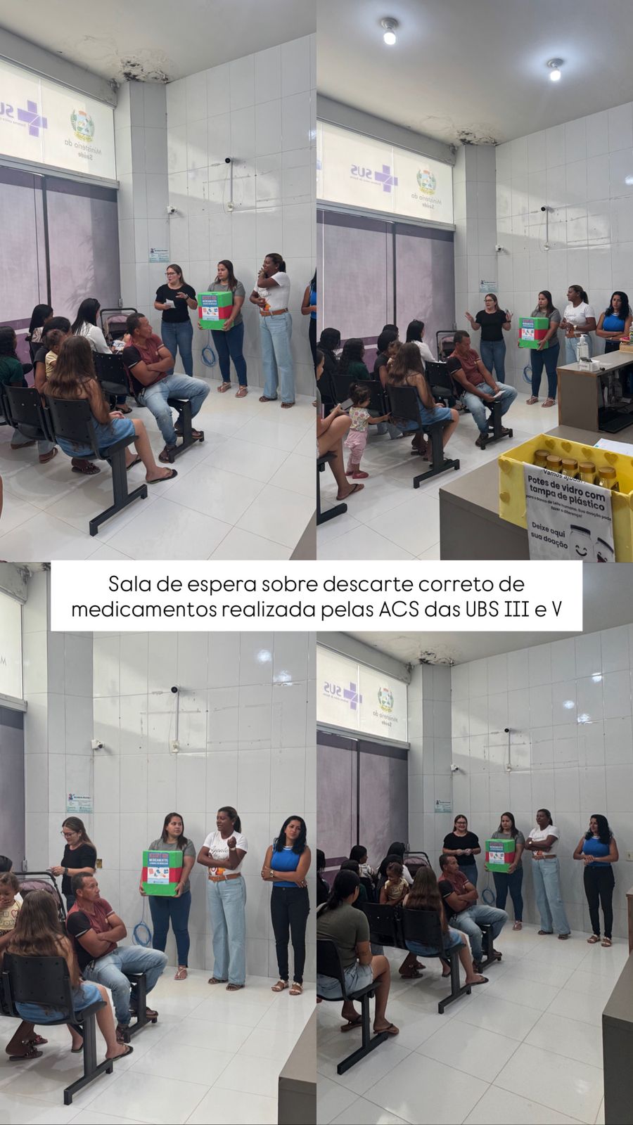 As ACS das UBS III e V explicaram sobre o descarte correto dos medicamentos vencidos ou em desuso, ressaltando sobre a caixa de descarte disponível na UBS.