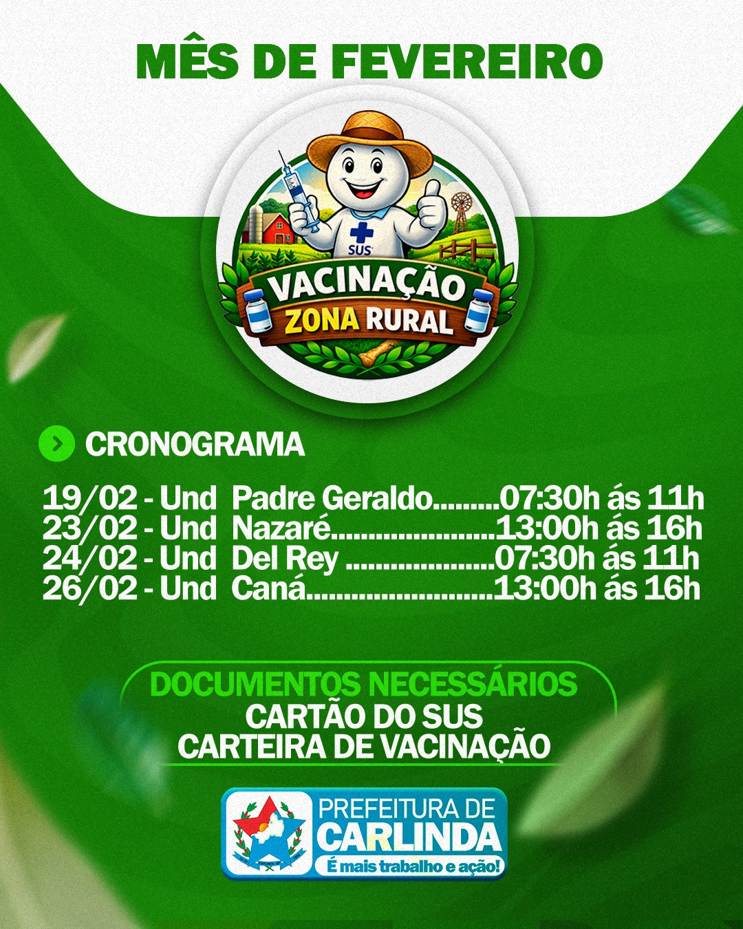 A Prefeitura de Carlinda, por meio da Secretaria de Saúde, segue levando cuidado e proteção para a nossa população da zona rural.