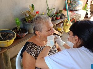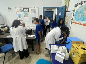 Durante as visitas, foram realizadas orientações de higiene oral e prevenção do câncer bucal, avaliação clínica e identificação de possíveis alterações, reforçando a importância do diagnóstico precoce.