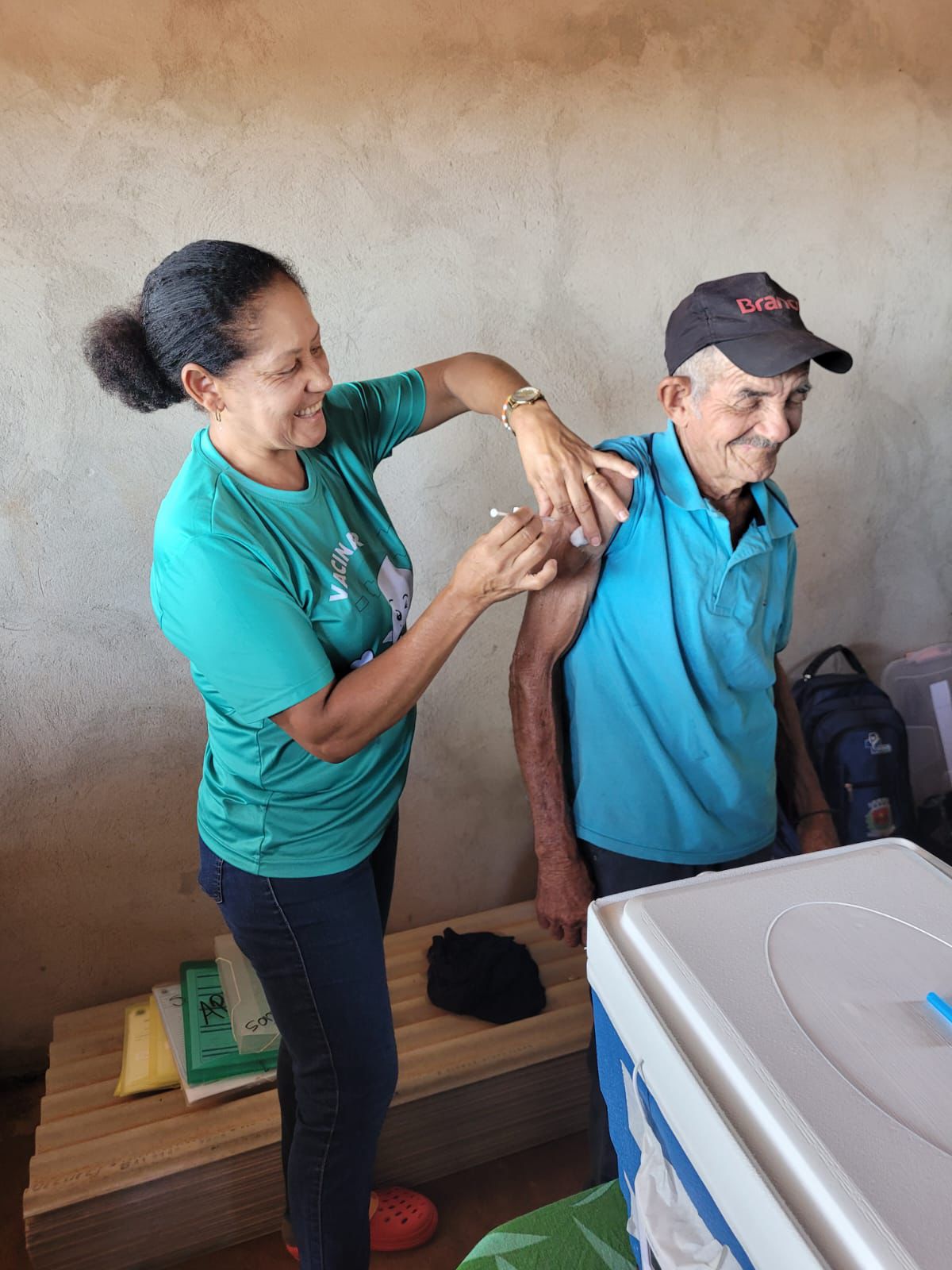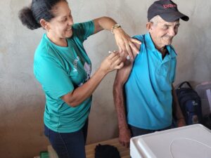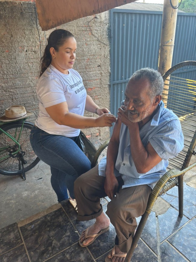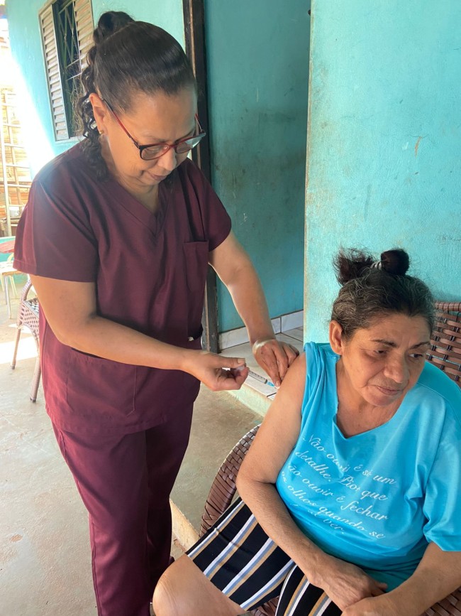 Preocupada com o baixo índice de vacinação entre os idosos, a equipe de saúde realizou, no sábado (14), uma ação especial de vacinação domiciliar. Graças ao empenho dos profissionais, foram imunizados 260 idosos, com a aplicação de 301 doses das vacinas contra a Influenza (gripe) e a COVID-19. A iniciativa foi um grande sucesso, mas, mesmo assim, a cobertura vacinal ainda está aquém do esperado.