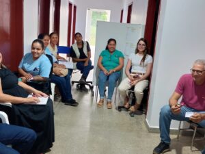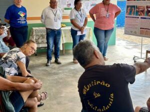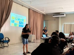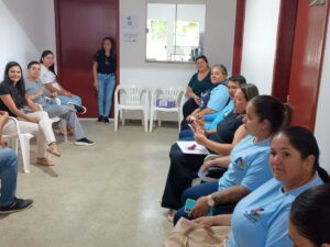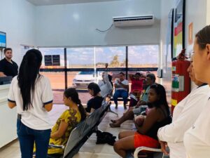 Anisangela, representante da Saúde Mental do Escritório Regional de Saúde da Região Teles Pires, conduziu uma oficina para os membros da Rede de Atenção Psicossocial (RAPS) de Cláudia. O momento foi marcado por troca de experiências e alinhamento de estratégias para fortalecer a saúde mental no município.