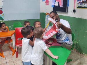 Dando continuidade ao projeto “Saúde Bucal na Escola: Alta Floresta Sorrisos Saudáveis”, as Equipes USF I Vila Nova e USF XII Cidade Alta II realizaram orientações sobre a importância da higiene bucal diária, e também avaliação odontológica e aplicação de flúor nas crianças das escolas da rede municipal, E.M. Professor Francisco Luiz da Silva e E.M. Anjo da Guarda.