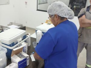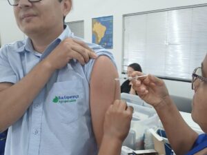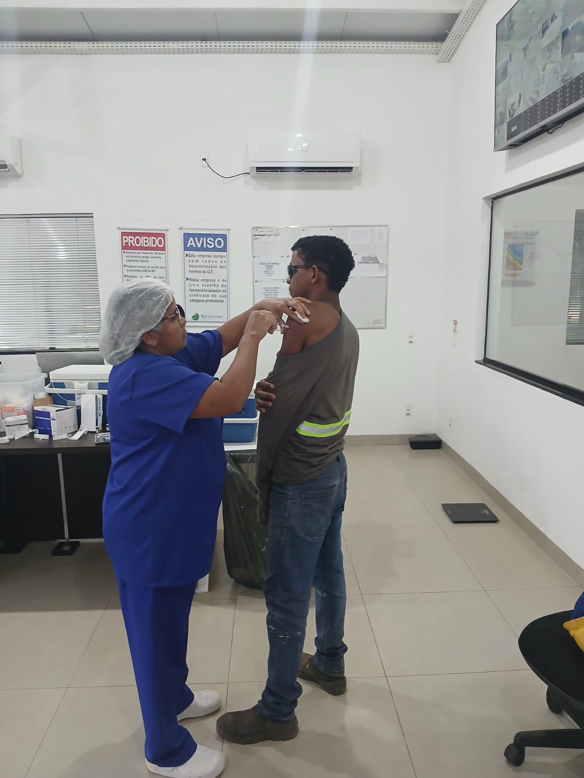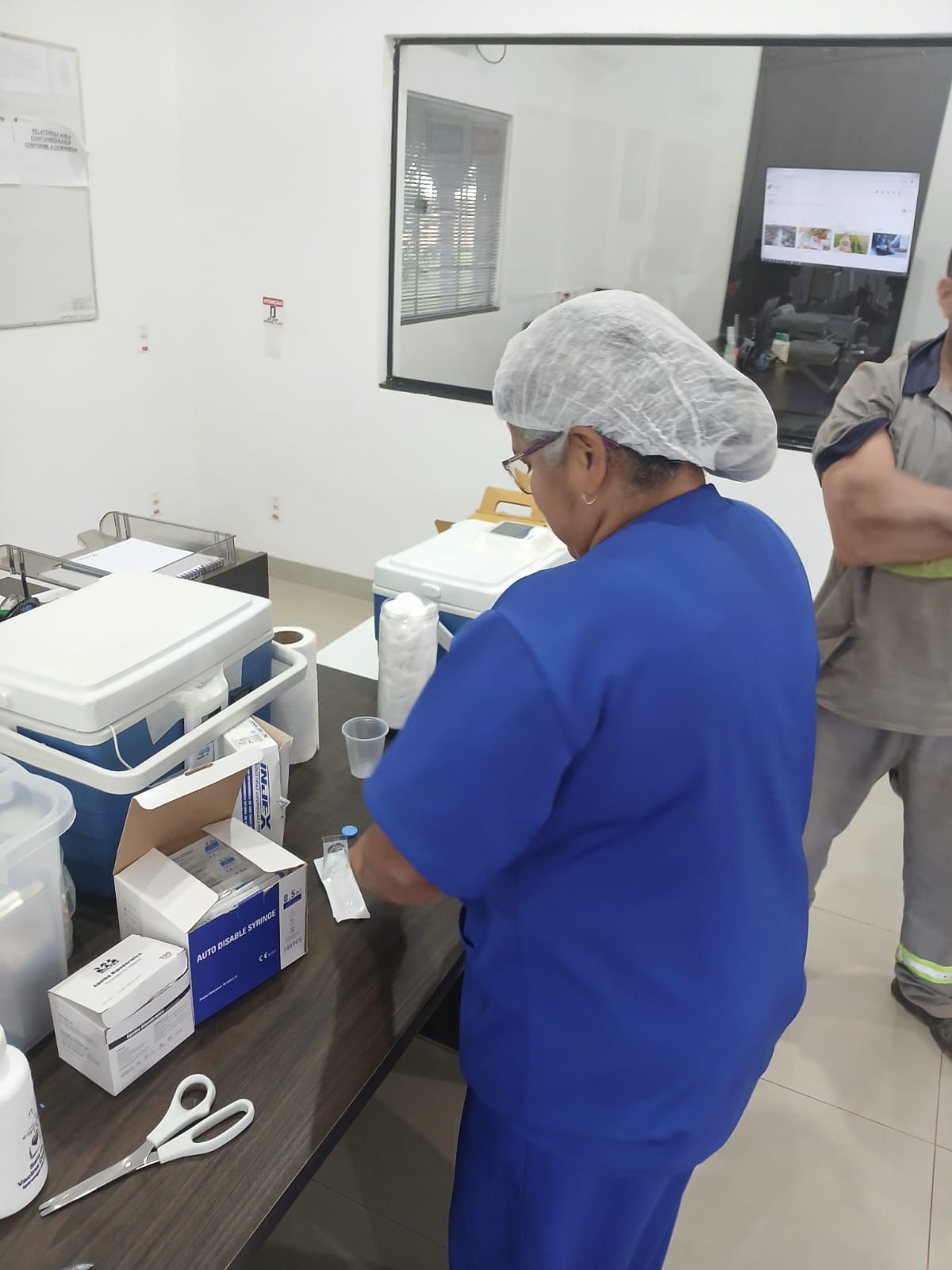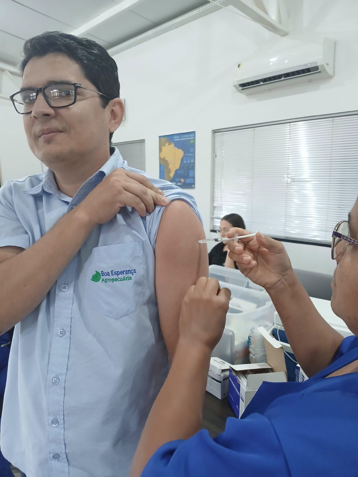 No dia 18 de junho foi realizada uma importante ação de saúde na Algodoeira Ipiranga do Norte, com foco na atualização do calendário vacinal do adulto. A iniciativa contou com a participação da equipe de saúde do município, que realizou a verificação dos cartões de vacinação dos colaboradores e aplicou as vacinas conforme as necessidades individuais. Foram atualizadas as seguintes imunizações: antitetânica, febre amarela, influenza, hepatite B e tríplice viral, todas essenciais para a promoção da saúde e prevenção de doenças.