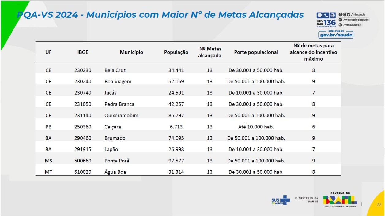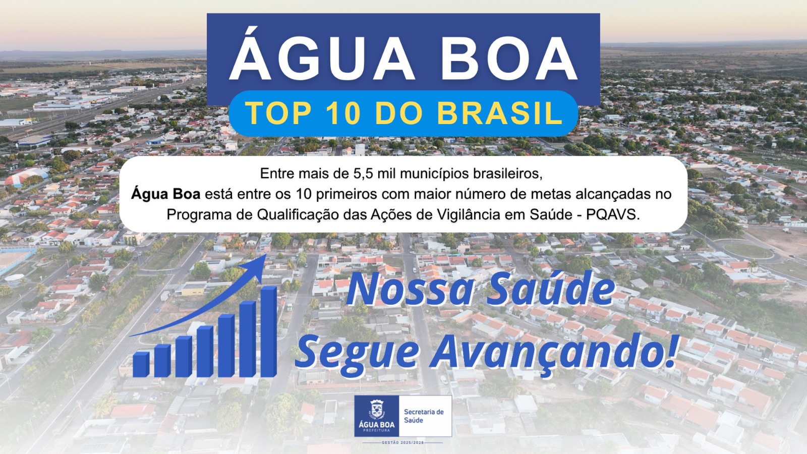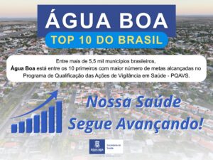A Prefeitura Municipal de Água Boa, por meio da Secretaria Municipal de Saúde, alcançou um resultado histórico no Programa de Qualificação das Ações de Vigilância em Saúde (PQA-VS) 2024. O município atingiu 100% dos indicadores avaliados, conquistando posição entre os 10 melhores resultados do Brasil, dentre mais de 5,5 mil municípios.