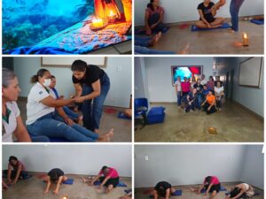 Na tarde de terça feira, 18/11 a equipe do PSF 3 representada pela Enfermeira Jesiane Félix, e as ACS Luciana Apª Camargo, Rosimara Alves e Suziane Muniz realizaram ação com o Tema: Essência do Bem Estar, trabalhando o auto cuidado e a consciência no controle da obesidade, e mudanças de hábitos alimentares saudáveis, foi aplicada a Prática Integrativa e complementar em Saúde (PICS) que são terapias que buscam integrar o corpo e a mente enfatizando o auto cuidado e a escuta acolhedora em parceria com a Nutricionista Juliana. Contou-se com a participação de 18 pesssoas.